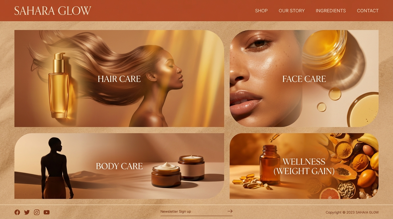 Née dans un petit village aux portes du désert, notre fondatrice, Fatima, a grandi entourée par les rituels de beauté ancestraux. Elle a appris de sa mère et de sa grand-mère les secrets des plantes du désert, le pouvoir de l'huile d'argan, et la sagesse de n'utiliser que ce que la nature offre de plus pur.